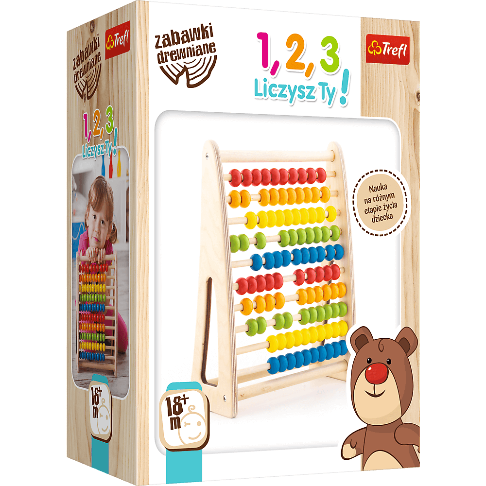 1,2,3 Liczysz Ty! kształtuje umiejętności logicznego myślenia i koncentracji, a także wspomaga naukę nazywania kolorów i liczb dzięki przesuwanym, wielobarwnym koralikom