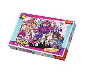 Puzzle 100 elementów z uwielbianą przez dziewczynki Barbie. Po ułożeniu powstanie obrazek o wymiarach 27,8x41 cm. Wysoką jakość, nasycenie kolorów i bezpieczeństwo układania zapewnia kalandrowany papier odbijający światło i wykorzystanie materiałów ekologicznych.