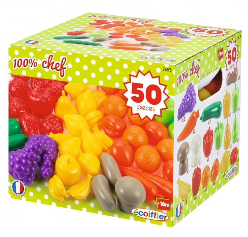 Zestaw zawiera 50 różnych warzyw i owoców.