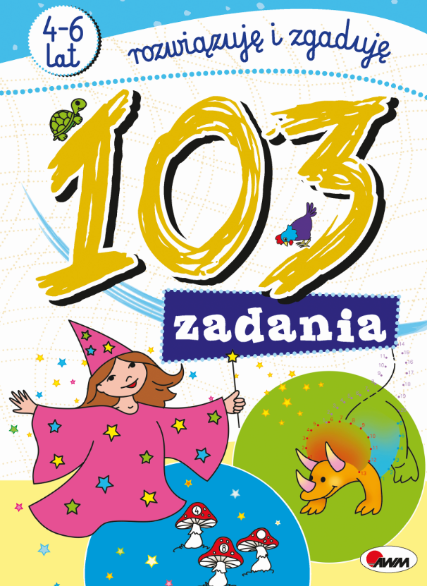103 zadań to labirynty, rebusy, znajdowanie podobieństw i różnic, rysowanie według wzoru, dodawanie, poznawanie liter oraz mnóstwo innych, ciekawych zabaw i zagadek