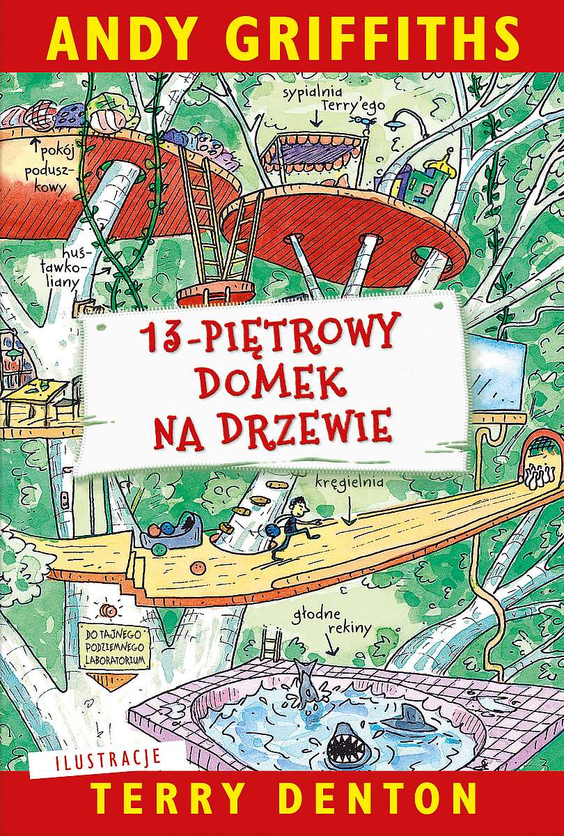 Andy i Terry mieszkają w trzynastopiętrowym domku na drzewie. A ten domek jest najfajniejszy na świecie! Znajdziecie tu kręgielnię, oczko wodne pełne rekinów, tajne podziemne laboratorium oraz inteligentny piankomat, który podąża za człowiekiem krok w krok. Naprawdę, życie byłoby piękne, gdyby nie to, że dwaj kumple mają jeden dzień na napisanie nowej książki dla swojego wydawcy, Nochalskiej Księgarni W dodatku ciągle coś im przeszkadza: latające koty, gigagoryle, milutkie syrenki, potwory morskie udające milutkie syrenki Domek na drzewie po prostu pęka w szwach od niezapowiedzianych gości!