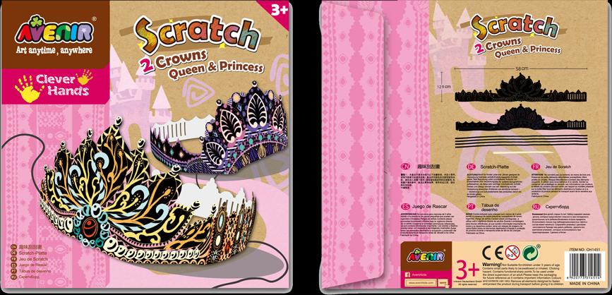 Zabawka kreatywna najwyższych lotów, pozwalająca nie tylko tworzyć piękne prace, ale także dająca doświadczenia sensoryczne - dzięki użyciu odpowiedniego narzędzia i zachowywania się papieru podczas zabawy dziecko odbiera nowe wrażenia dotykowe. W zestawie są 2 korony oraz patyczek do zdrapywania.
