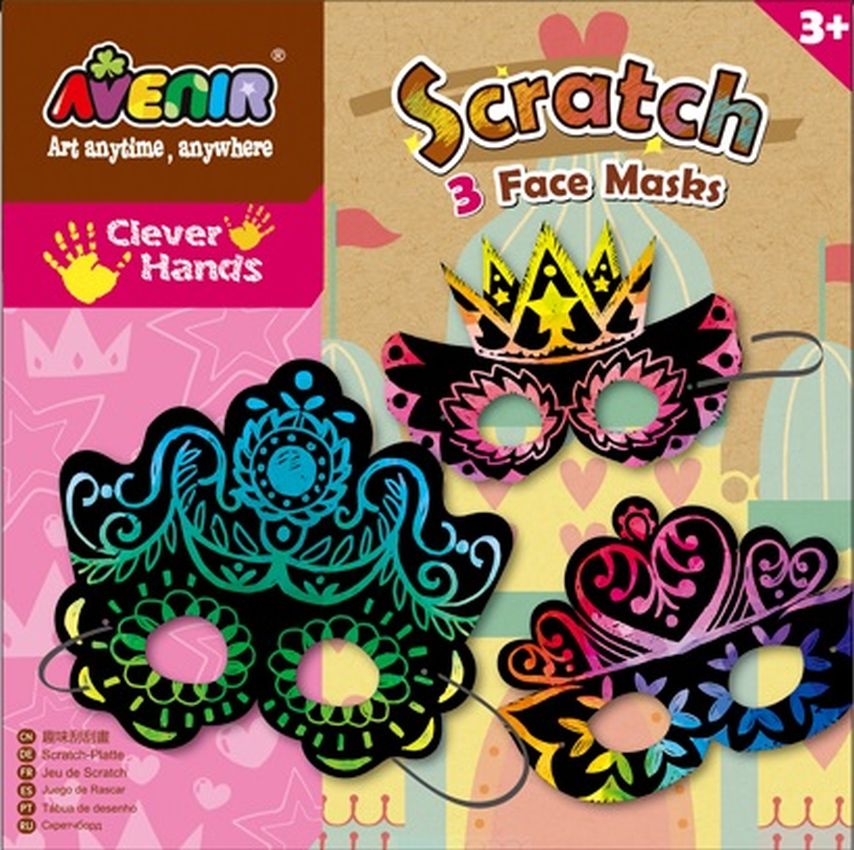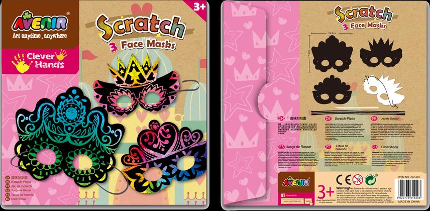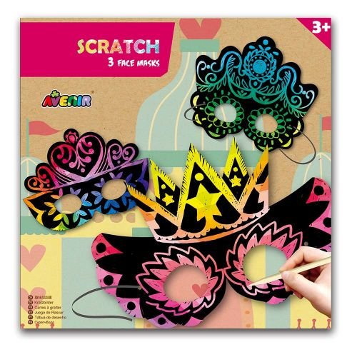 Avenir Scratch to zupełnie nowe podejście do prac ręcznych. Wyjątkowy arkusz, na którym tworzy się poprzez zdrapywanie warstwy wierzchniej, by odsłonić wielobarwną warstwę spodnią. Zabawka kreatywna najwyższych lotów, pozwalająca nie tylko tworzyć piękne prace, ale także dająca doświadczenia sensoryczne - dzięki użyciu odpowiedniego narzędzia i zachowywania się papieru podczas zabawy dziecko odbiera nowe wrażenia dotykowe. W zestawie są trzy maski oraz patyczek do zdrapywania, a także gumka. Dla dzieci powyżej 3. roku życia. Opakowanie: 23 x 23 cm.