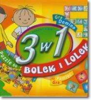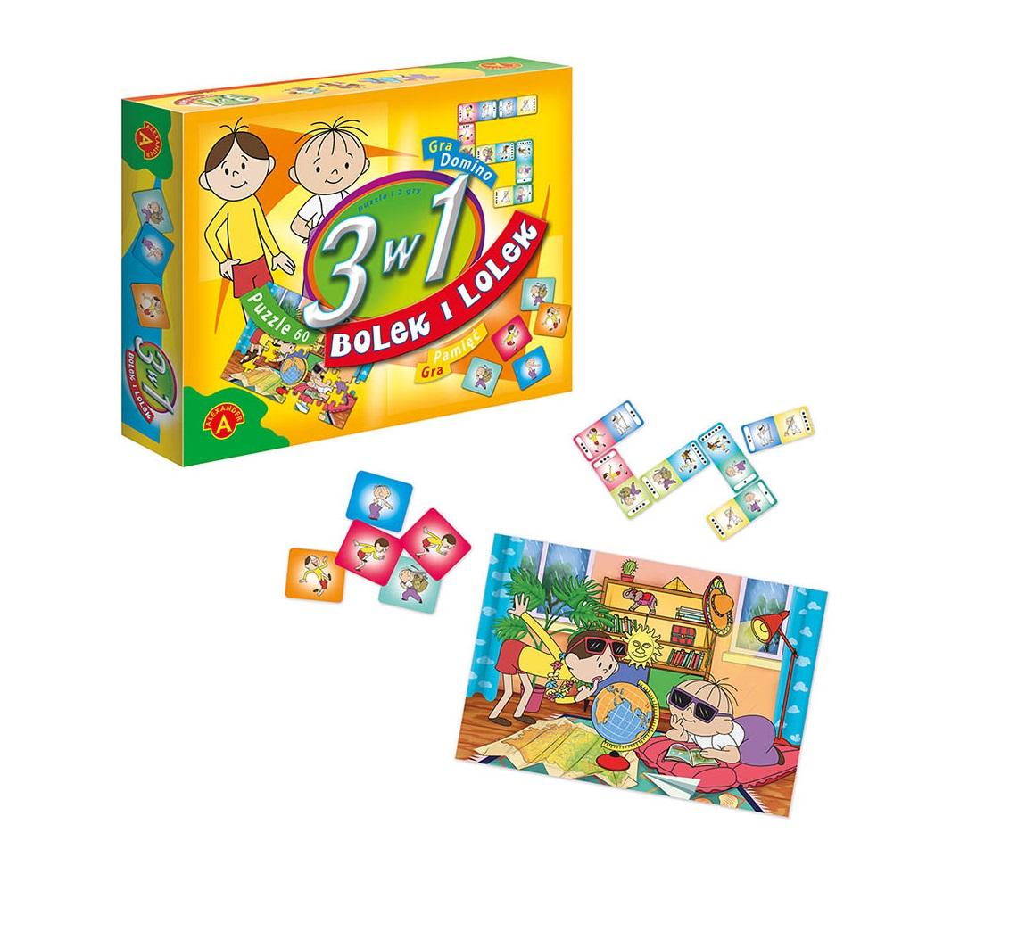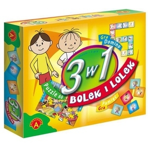 3 w 1 Bolek i Lolek to zestaw 2 gier i puzzli 60 elementów.Gry i puzzle łączy wspólny temat - Bolek i Lolek.Charakter gier jest zróżnicowany. Pamięć to emocjonująca gra i dobry trening pamięci zarówno dla najmłodszych, jak i dla starszych.W zestawie znajduje się również Domino obrazkowe, a także puzzle, które są dobrym treningiem cierpliwości i skupienia.Zawartość pudełka:28 elementów domina10 plastikowych podstawek40 tabliczek gry Pamięćpuzzle 60 elementówinstrukcja.Gra dla 1-5 graczy, w wieku powyżej lat 4.