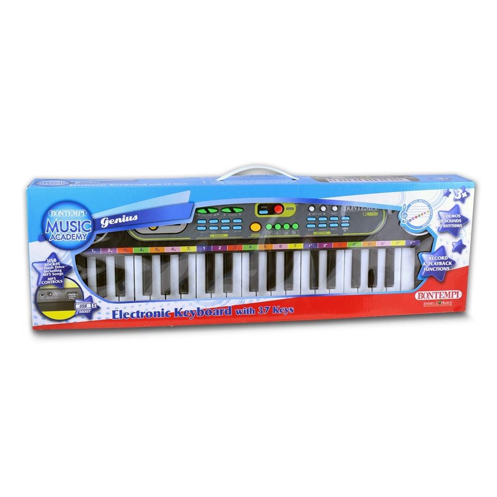 Elektroniczny keyboard zawierający 37 klawiszy przeznaczony dla dzieci od 3 roku życia. Posiada 8 wgranych dźwięków, 6 różnych rytmów, 5 piosenek oraz 4 dźwięki perkusyjne. Panel znajdujący się u góry instrumentu umożliwia regulację głośności, nawigację po dźwiękach i zmianę tempa. Keyboard posiada miejsce na adaptor (nie jest częścią zestawy) czy wejście USB. Do poprawnego funkcjonowania wymaga 4 baterii R6/AA, które nie znajdują się w zestawie.