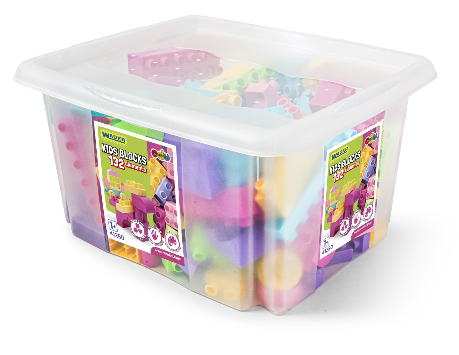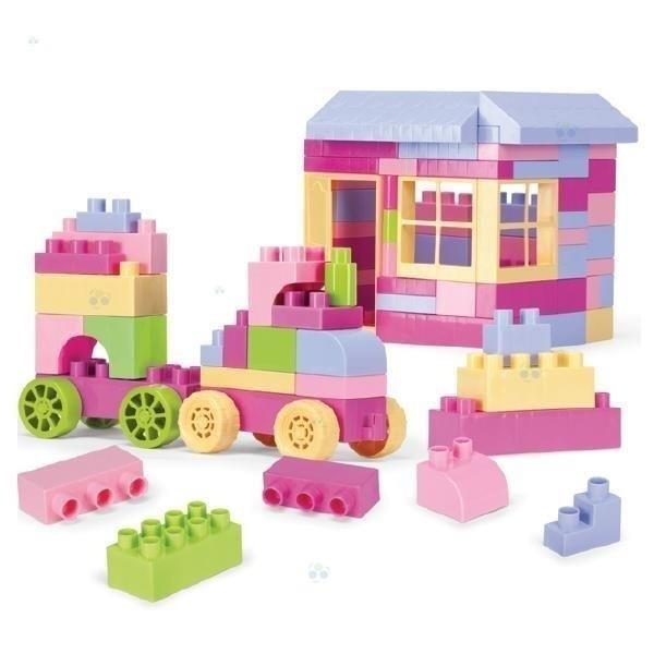 Zestaw 132 klocków w atrakcyjnych kolorach dziewczęcych, charakteryzujący się możliwością tworzenia wielu ciekawych budowli.