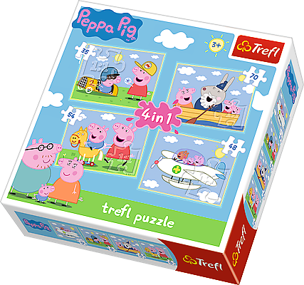 Nie jedna, nie dwie, ale aż cztery układanki zamknięte w jednym pudełku to prawdziwa gratka dla miłośników puzzli! Po ułożeniu otrzymamy cztery obrazki różnej wielkości przedstawiającymi podróże Świnki Peppy. Zestaw doskonale spełnia oczekiwania rodzeństwa - każdy ułoży swój ulubiony obrazek nawet w tym samym czasie. Zróżnicowana liczba elementów pozwala na zabawę zarówno młodszym, jak i nieco starszym dzieciom. Dodatkowym urozmaiceniem zabawy może być układanie na czas, porównywanie obrazków, szukanie różnic i podobieństw. Zabawna grafika ze świnką Peppą i możliwość wspólnego tworzenia to powody, dla których dzieci uwielbiają układać puzzle.