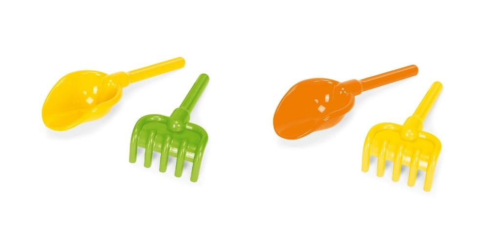 Zestaw składający się z plastikowej, 25 centymetrowej łopaty oraz plastikowych grabek o długości 19cm. Łopata i grabki w całości wykonane są w Polsce z najwyższej jakości tworzywa sztucznego.