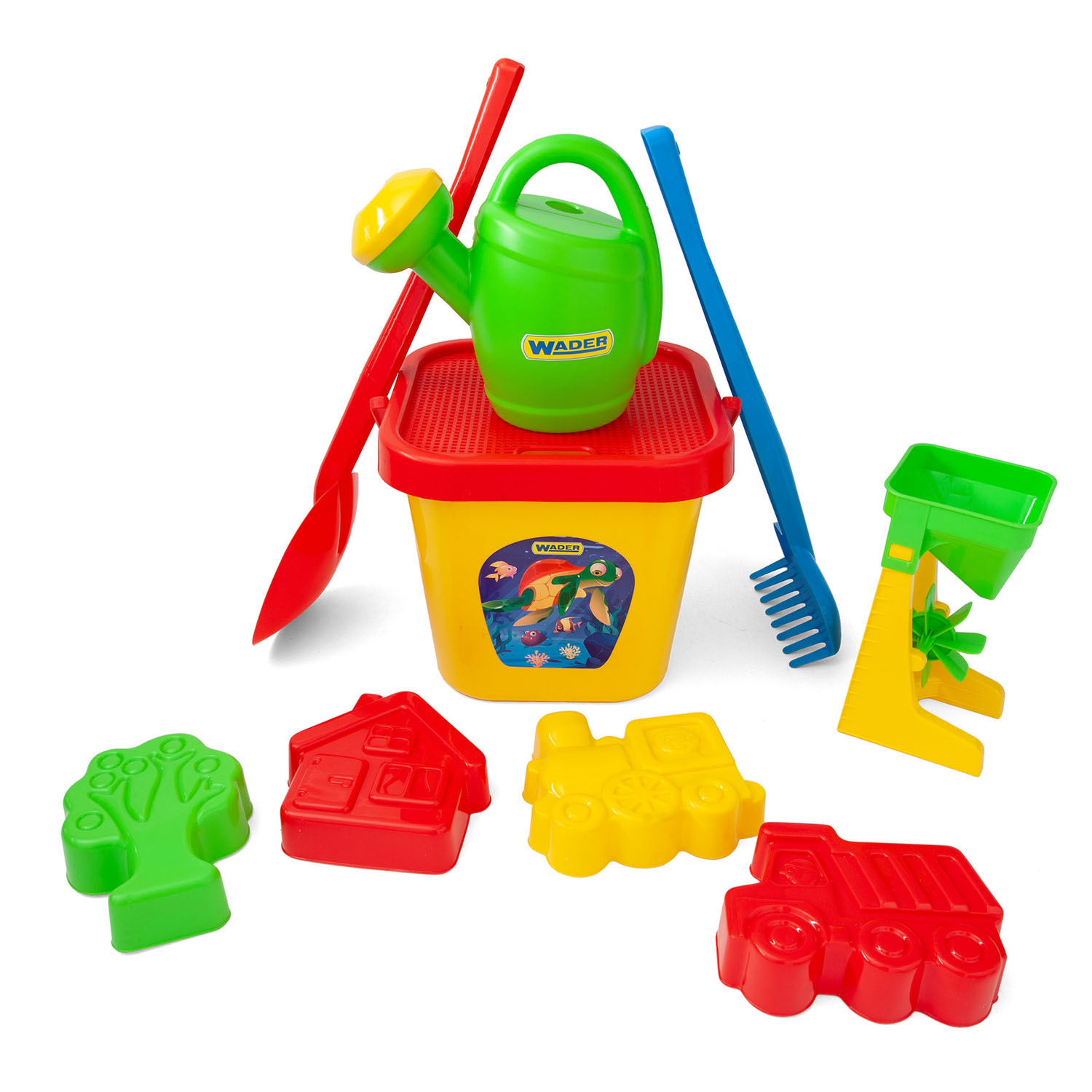 Pokaźny komplet do piasku zawierający solidne i duże zabawki plażowe.