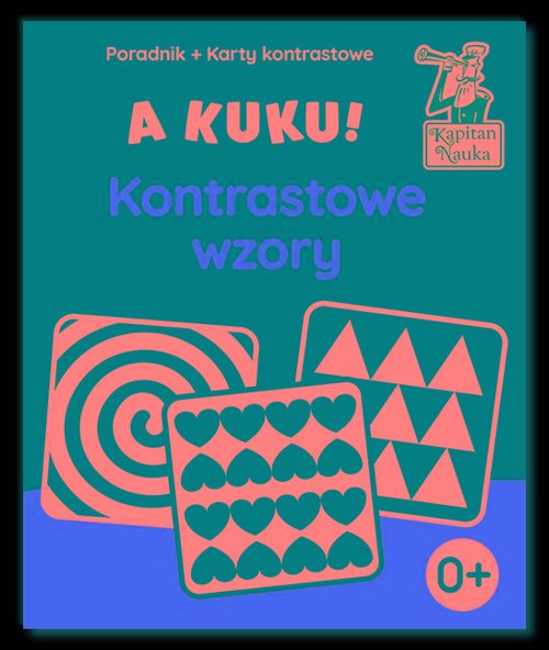 A kuku! Kontrastowe wzory to świetny sposób na stymulowanie wzroku niemowląt już od pierwszych dni życia. Poręczny zestaw zawiera wszystko, czego potrzebujesz, by wspierać rozwój wzroku malucha: praktyczny poradnik dla opiekuna i trwałe, wykonane z grubej tektury karty obrazkowe do zabawy z dzieckiem.