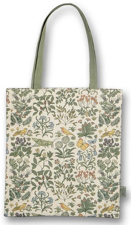 Ta elegancka torba typuszoperka wykonana z bawełny z recyklingu to doskonałe połączenie troski o środowisko z pięknym wzornictwem. Ozdobiona wzorem "Apothecary's Garden" autorstwa C.F.A. Voyseya, pełnym roślin, ptaków i owadów, idealnie oddaje romantyczny klimat angielskiego ogrodu i ducha ruchu Arts & Crafts.