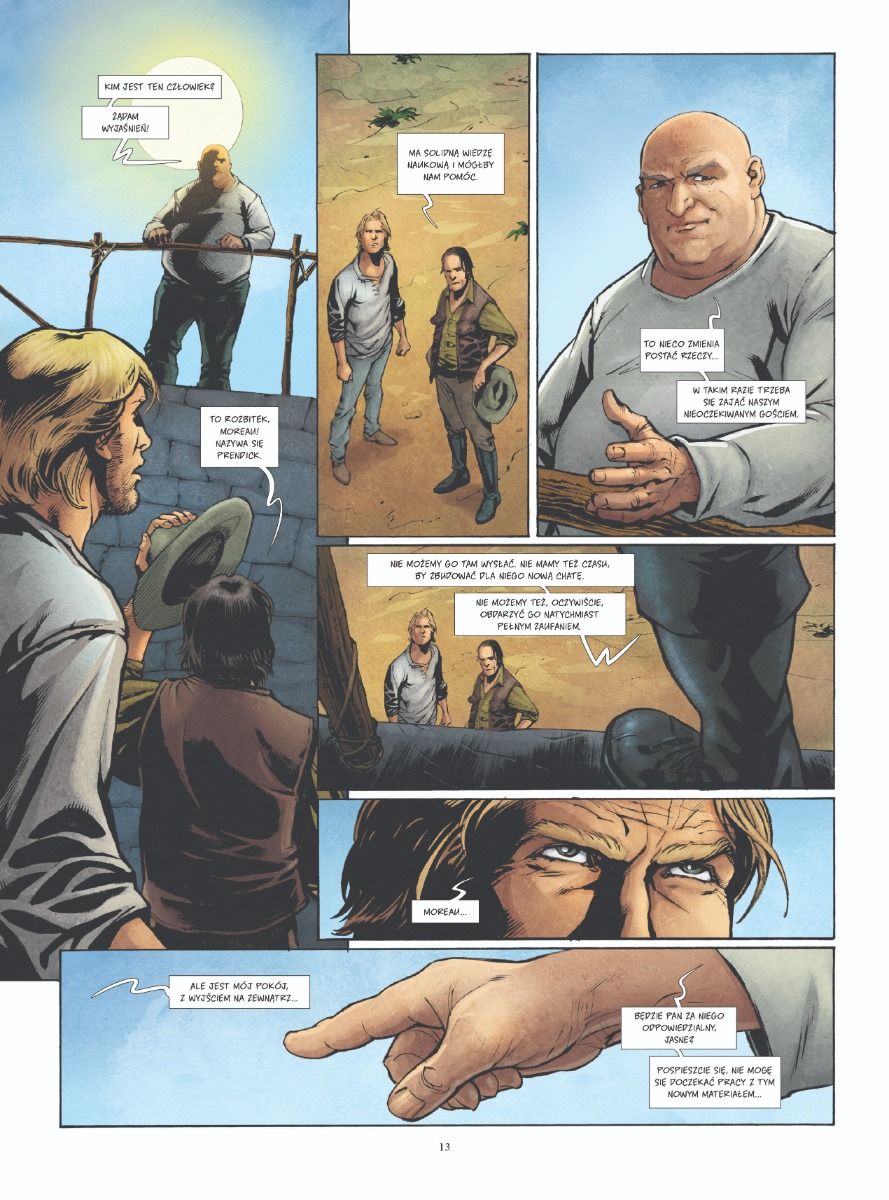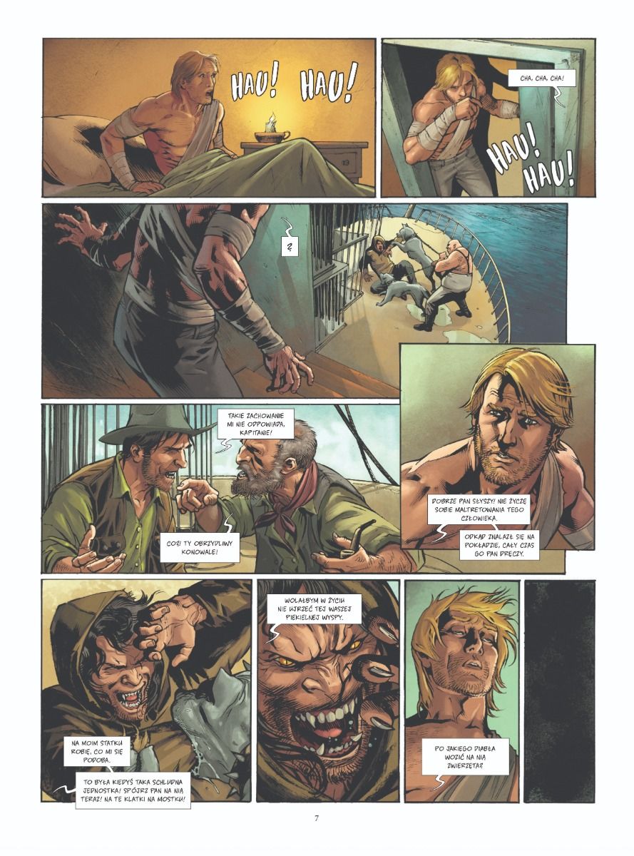 Komiksowa adaptacja głośnej powieści science-fiction Herberta Georgeʼa Wellsa. Edward Prendick, jedyny ocalały z katastrofy morskiej, zostaje uratowany przez statek, którym płynie Montgomery'ego, asystent doktora Moreau. Przez ostatnie dziesięć lat na odizolowanej wyspie ci dwaj naukowcy przeprowadzali przerażające eksperymenty, modyfikując genetycznie zwierzęta, aby uczynić je świadomymi. Zwierzoludzie przestrzegają bardzo precyzyjnego zbioru zasad – Prawa – zabraniającego im wszelkich prymitywnych zachowań, i czczą Moreau jak boga. Wkrótce okazuje się, że w Zwierzoludziach nadal drzemią pierwotne instynkty...