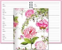 Elegancki, poręczny adresownik. Stylowa okładka z tłoczeniami. W środku opisy w języku angielskim. Zamknięcie na gumkę.