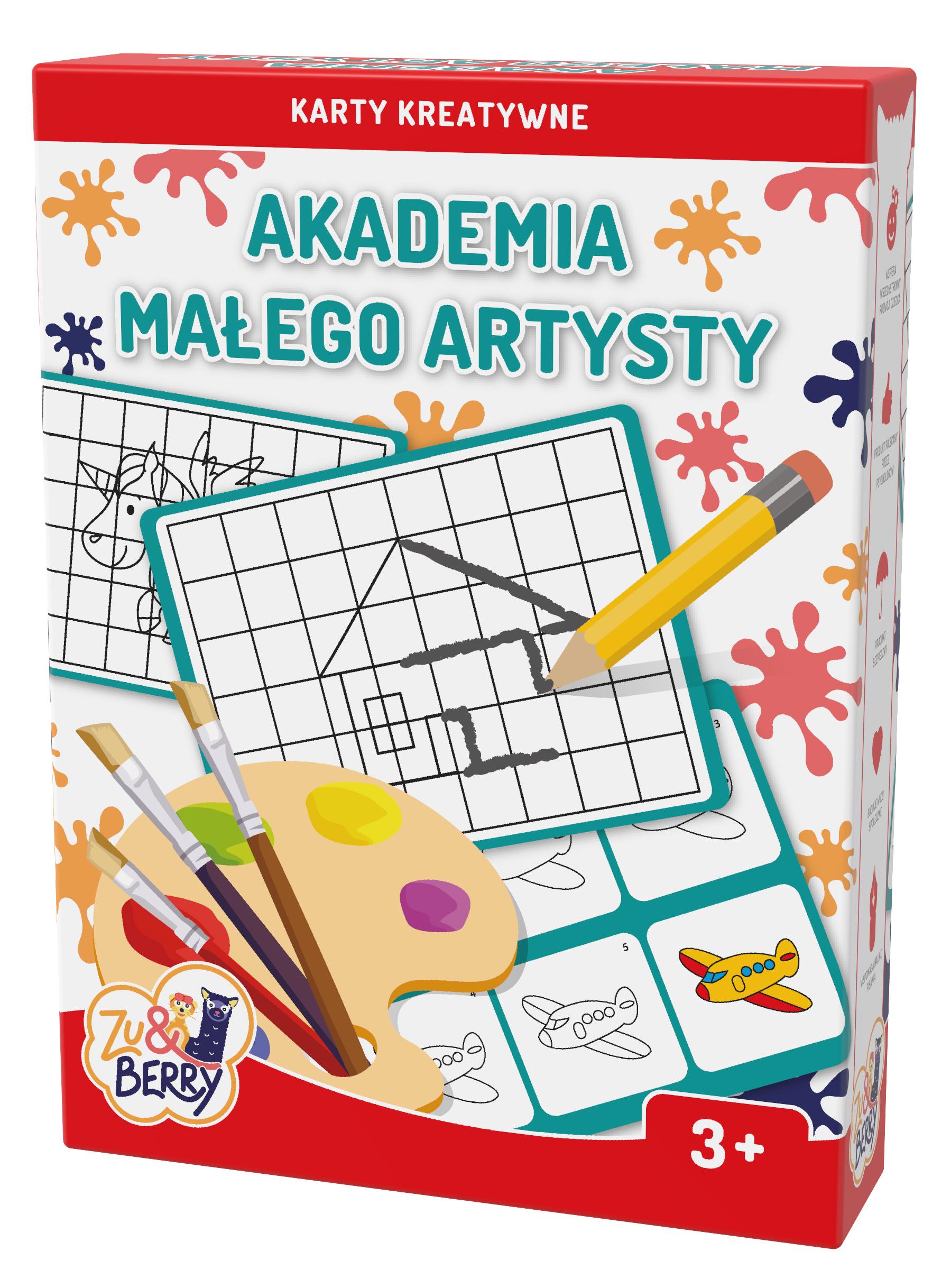 Mały Picasso w akcji! Zestaw zawiera karty wspierające naukę rysowania na kilka różnych sposobów: odwzorowanie na pustej karcie obrazka krok po kroku, od ogółu do detali, a także przeniesienia umieszczonego na kratkowanym tle rysunku na kartę z pustymi kratkami. Dzieciom w różnym wieku można dobrać odpowiednie dla nich trudniejsze czy mniej skomplikowane ilustracje i formy ćwiczenia rysowania obrazków.