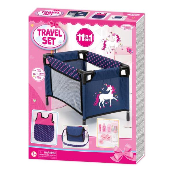 Z tym eleganckim i dopasowanym kolorystycznie zestawem akcesoriów dla lalek można odgrywać niezliczone scenki dla dzieci. W łóżeczku podróżnym można położyć do spania lalki o wzroście do 42 cm. Śpiwór w dopasowanym kroju zapewni, ze Twój ulubiony zwierzak lub lalka nie zmarznie. Dostarczone artykuły pielęgnacyjne zapewniają również dużo zabawy. Dzięki butelce, talerzowi i sztućcom lalka może być intensywnie karmiona, a przy pomocy smoczka lalkę można pocieszyć. W dostarczonej torbie na ramie akcesoria można szybko schować i łatwo zabrać w dowolne miejsce.