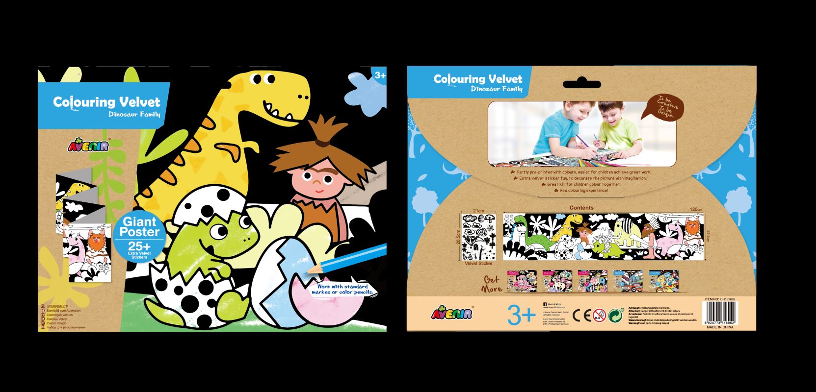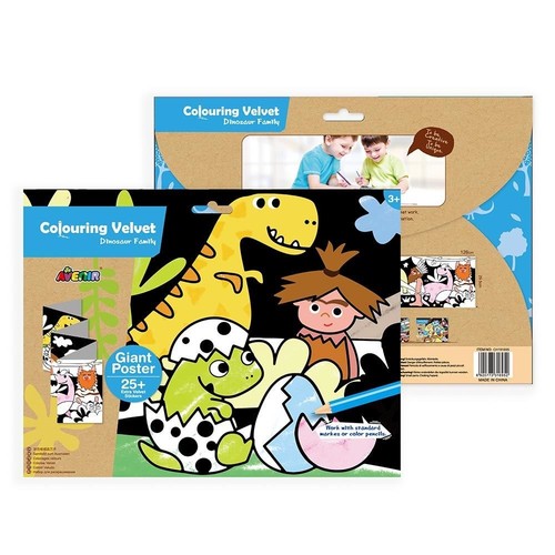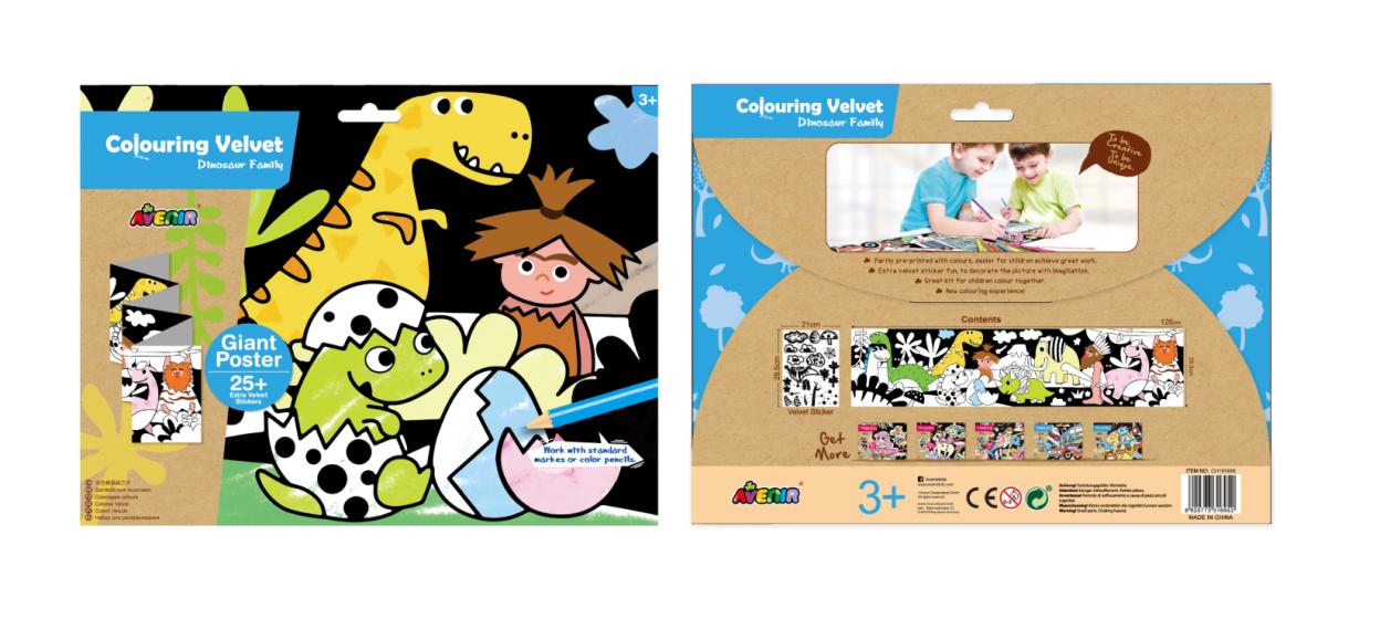 Na czym polega kolorowanie? Na wypełnianiu barwą gotowych konturów. Kto powiedział, że te kontury nie mogą być... aksamitne?! Wyjątkowa kolorowanka Avenir z dinozaurami jest arkuszem papieru z konturami z aksamitnego materiału. Gotowy obraz robi piorunujące wrażenie! Dla dzieci powyżej 3. roku życia.