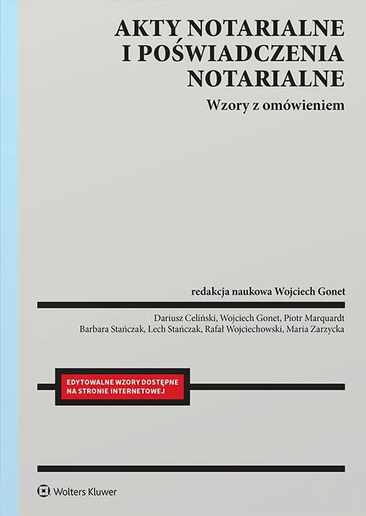 Książka zawiera niezbędne wzory aktów notarialnych oraz poświadczeń stosowanych w codziennej praktyce w kancelariach notarialnych. Jej treść została opracowana specjalnie z myślą o notariuszach, zastępcach notarialnych oraz aplikantach notarialnych, aby ułatwić i usprawnić ich pracę. W publikacji czytelnik znajdzie wzory różnych aktów notarialnych, takich jak akty poświadczenia dziedziczenia, europejskiego poświadczenia dziedziczenia, akty powołania zarządcy sukcesyjnego oraz akty odwołania zarządcy sukcesyjnego. Dzięki nim będziesz mógł skutecznie i profesjonalnie obsługiwać sprawy związane z dziedziczeniem i zarządzaniem sukcesyjnym. W przypadku najpopularniejszych umów – jak sprzedaż, darowizna, protokoły zgromadzeń spółek – starano się przedstawić kilka wzorów dotyczących odmiennych przypadków. W książce zamieszczono także rzadko sporządzane wzory aktów notarialnych, jak np. przekształceń przedsiębiorcy indywidualnego, spółki cywilnej czy spółek osobowych w spółki kapitałowe, zgody małżonków na dokonanie czynności prawnych, zebrań wspólnot mieszkaniowych, odstąpienia od umowy sprzedaży oraz umów z udziałem syndyka masy upadłości. Dodatkowo książka zawiera również wzory poświadczeń, które są bardzo ważne w codziennej pracy notariusza. Publikacja została opracowana przez doświadczonych prawników, którzy posiadają ogromną wiedzę i doświadczenie w dziedzinie notariatu. Dzięki temu można mieć pewność, że jej treść jest rzetelna, aktualna i kompleksowa.