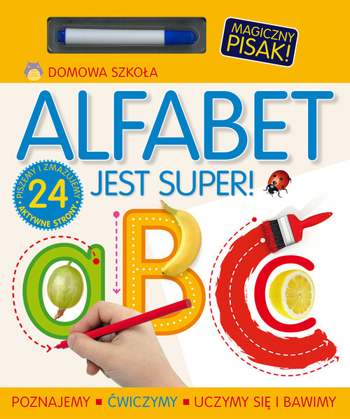 Książki z serii ""Domowa szkoła"" to idealna propozycja dla dzieci, które zaczynają przygodę z pisaniem i liczeniem.24 strony pełne ćwiczeń oswajają najmłodszych z alfabetem. Dzięki dołączonemu zmywalnemu pisakowi dzieci mogą wielokrotnie ćwiczyć nowe umiejętności i wyrabiają sobie pewność ręki przy pisaniu. To sprawdzona i przyjemna metoda nauki!