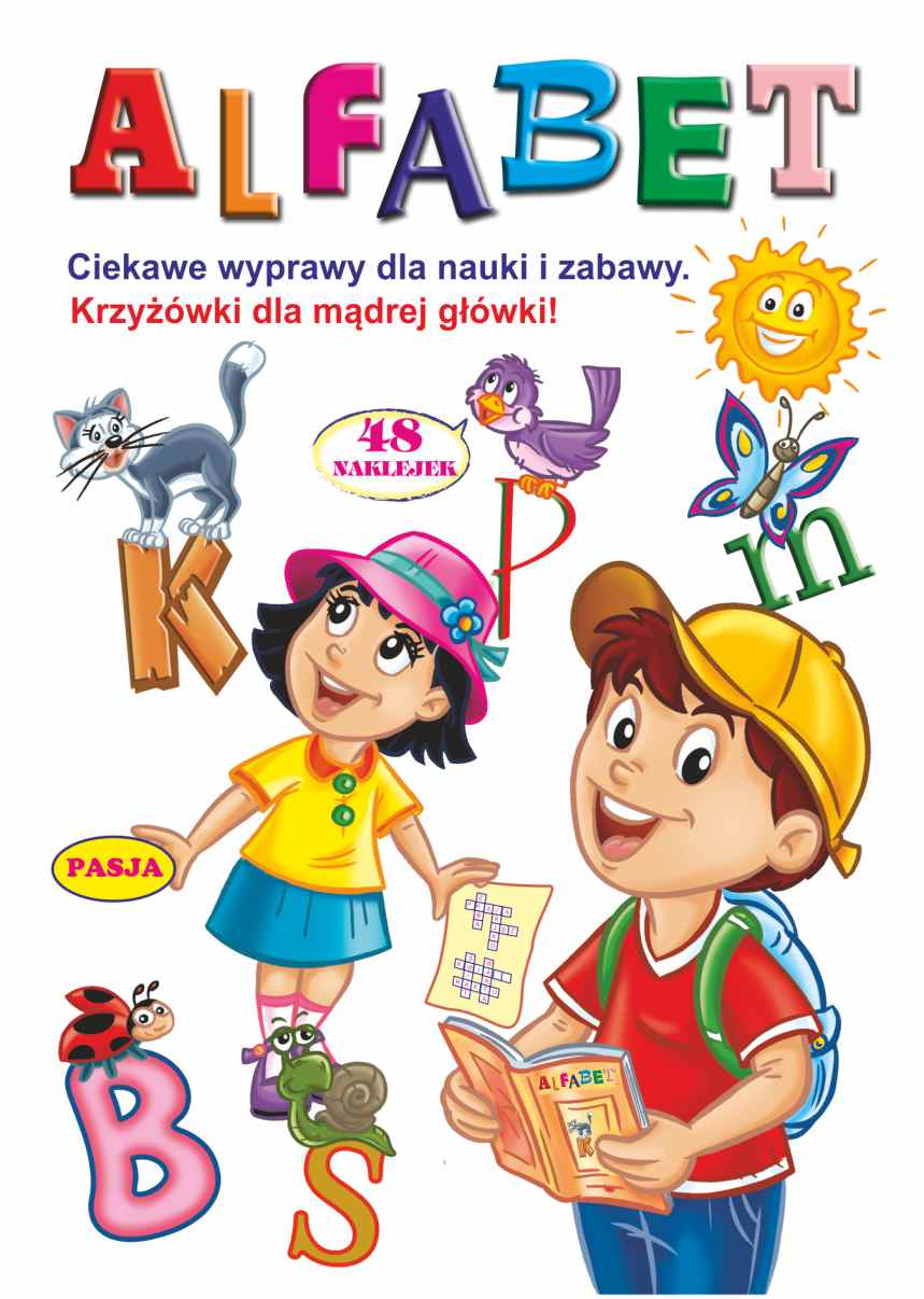 Książka edukacyjna z zadaniami logicznymi i naklejkami.