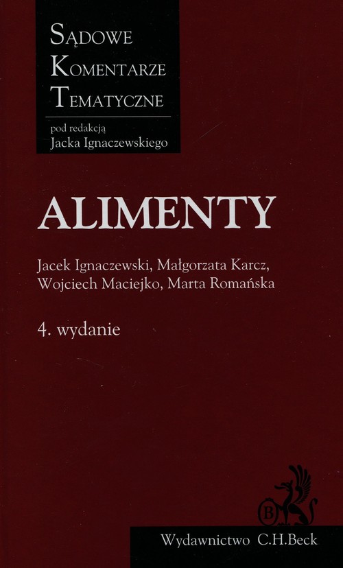 Kolejny tom Sądowych Komentarzy Tematycznych jest przekrojowym ujęciem problematyki objętej tytułowym zagadnieniem. Z założenia praca ma charakter kompendium wiedzy na temat alimentów, ujęta została w złożonej formie, obejmującej elementy poradnika, monografii, komentarza i systemu prawa. Takie ujęcie ma na celu możliwie najpełniejsze i najprostsze przedstawienie problematyki związanej z alimentami; problematyki złożonej, niesłusznie utożsamianej wyłącznie z Kodeksem rodzinnym i opiekuńczym. Na całość pracy – poza klasycznym, kodeksowym ujęciem alimentów – składają się ponadto takie zagadnienia, jak: administracyjne środki dyscyplinowania dłużnika, fundusz alimentacyjny, egzekucja krajowa świadczeń alimentacyjnych i rent o charakterze alimentacyjnym, egzekucja z zagranicy świadczeń alimentacyjnych jurysdykcja w sprawach o alimenty. Pierwsze Wydanie Sądowych Komentarzy Tematycznych poświęconych alimentom zbiegło się w czasie z nowelizacją Kodeksu rodzinnego i opiekuńczego, obowiązującą od 13.6.2009 r., która nie pozostaje pozostała bez wpływu na zakres obowiązku alimentacyjnego, a także z „reaktywacją funduszu alimentacyjnego”. Od tego czasu dokonano wielu nowelizacji, co wystarcza do ponownego poświęcenia alimentom zainteresowania. W tym jednak nie wyczerpują się powody, dla których napisano niniejszą pracę. Wstąpienie Polski do Unii Europejskiej i szerokie otwarcie granic nie pozostają bez wpływu na kwestię nowego spojrzenia na jurysdykcję w sprawach alimentacyjnych, która z pozycji marginesu zainteresowania urasta do istotnego problemu. Niemniej ważnym zagadnieniem w obecnych realiach swobody przepływu osób jest problem skutecznego wyegzekwowania świadczeń alimentacyjnych z państwa miejsca przebywania dłużnika. Są to w krajowej literaturze zagadnienia nowe, które dotychczas nie doczekały się pogłębionych analiz. Nowością jest także ujęcie egzekucji alimentów w kraju na tle całego postępowania egzekucyjnego, nieograniczonego jedynie do przepisów szczególnych z art. 1081–1088 KPC. Ze względu na przekrojowe ujęcie niniejszej pracy mamy nadzieję, że komentarz będzie pomocny prawnikom wszystkich profesji oraz studentom i aplikantom. Liczymy także, że bezpośredni adresaci norm prawnych – dłużnicy i wierzyciele alimentacyjni – ze względu na przystępną formę i język z powodzeniem skorzystają również z przedmiotowej pracy.
