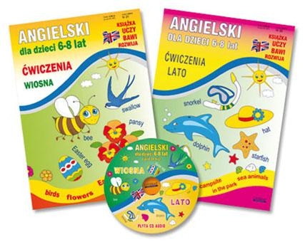Ćwiczenia. Zestaw: 2 książki + płyta CD AUDIO Skuteczna nauka języka angielskiego przez zabawę - dzięki zestawowi składającego się z 2 książek z ćwiczeniami, grą planszową i słowniczkiem oraz płyty CD AUDIO zawierającej pełny tekst książek. Dziecko pozna różnorodne słówka dotyczące następujących tematów związanych z wiosną i latem: MONTHS, ON THE MEADOW, SPRING FLOWERS, FROM AN EGG TO A BUTTERFLY, EASTER, BIRDS, MOTHER'S DAY, ON THE BEACH, AT THE CAMPSITE, IN THE PARK, SEA ANIMALS, CLOTHES. Zestaw został opracowany przez doświadczonego anglistę specjalizującego się w nauczaniu początkowym.