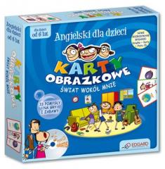 Angielski dla dzieci - Karty obrazkowe Świat wokół mnieZestaw zawiera:- 104 kolorowe karty angielsko-polskie,- poradnik dla rodziców i nauczycieli,- płyta CD z nagraniami słówek i piosenek.104 kolorowe karty polsko-angielskieZestaw kart obrazkowych opracowano specjalnie dla dzieci od 6 roku życia. Przeznaczony jest do nauki języka angielskiego w domu, w przedszkolu i szkole. Na kartach zamieszczono kolorowe zabawne ilustracje i podpisy po angielsku (awers) i po polsku (rewers). Łącznie komplet uczy aż 104 słówek.Poradnik dla rodziców i nauczycieliRodzice i nauczyciele znajdą w nim pomysły na 33 wspólne gry i zabawy z wykorzystaniem kart, a także przydatny w praktyce zapis wszystkich słówek i tekstów piosenek wraz z tłumaczeniem.GRATIS płyta CD z nagraniami słówek i piosenekZnajdują się na niej wszystkie słówka i piosenki udźwiękowione przez profesjonalnych lektorów. Dzięki nagraniom dzieci szybciej nauczą się poprawnej wymowy, będą lepiej rozumiały angielskie wypowiedzi i chętniej rozmawiały w języku obcym.