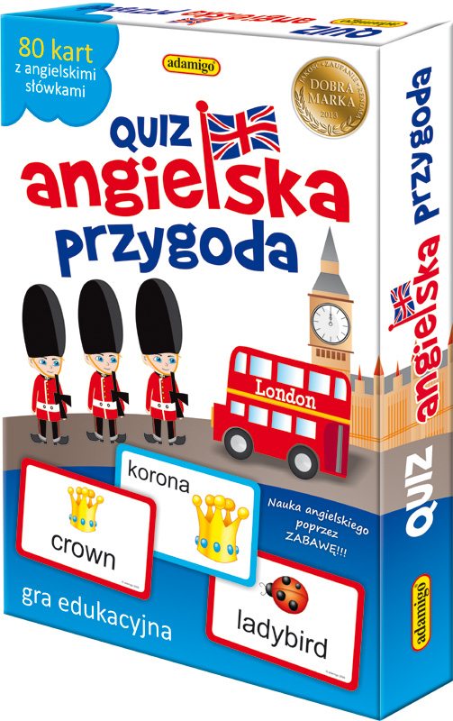 Ta niezwykła wycieczka po Londynie umożliwia podczas świetnej zabawy, utrwalenie angielskiego słownictwa. Gra zawiera aż 80 dwustronnych kart z angielskimi słówkami, na których znajdują się nazwy przedmiotów, zwierząt, kształtów, kolorów i liczb.