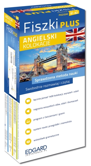 Fiszki PLUS Kolokacje (B1-B2) to pakiet będący częścią rozbudowanego systemu nauki, dzięki któremu szybko i skutecznie nauczysz się ważnych kolokacji, niezbędnych do swobodnego porozumiewania się po angielsku. Każdy zestaw Fiszek PLUS to starannie przygotowany materiał, wysokiej jakości nagrania wymowy wraz z programem komputerowym, memolistą i grami językowymi.