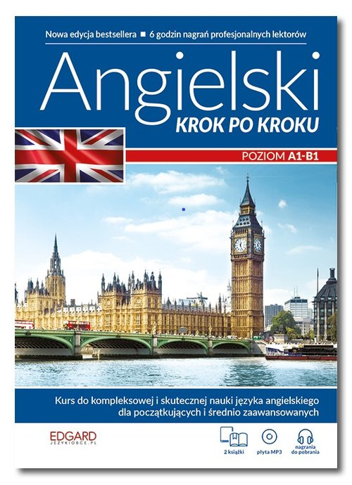 ANGIELSKI. Krok po kroku to kurs do kompleksowej nauki języka od poziomu początkującego do średnio zaawansowanego (A1-B1). Polecany jest osobom zaczynającym naukę oraz wszystkim, którzy chcą doskonalić umiejętności językowe, poszerzyć zasób słownictwa oraz poprawić wymowę.