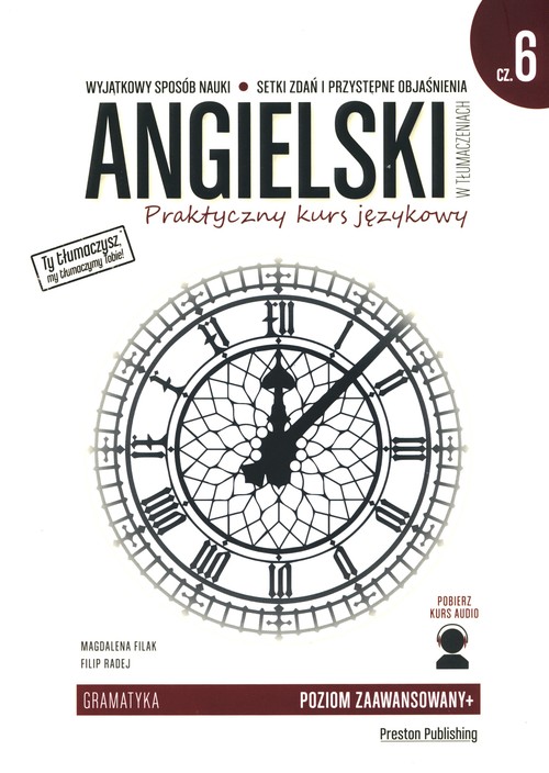 Jest to idealny suplement do regularnej nauki języka angielskiego oraz pomoc w przygotowaniu się do egzaminów. W prosty i jasny sposób przekazuje wiedzę na temat konstrukcji gramatycznych i zachęca do ćwiczeń. To także doskonały materiał wspomagający naukę zarówno dla nauczyciela, jak i dla ucznia.Szósta część kursu do praktycznej nauki języka angielskiego, która łączy w sobie naukę gramatyki oraz umiejętności mówienia na poziomie zaawansowanym. Drugie, poszerzone wydanie wzbogacone zostało o kolejne zagadnienia i kurs audio w dwóch wersjach językowych: polsko-angielskiej oraz angielskiej.