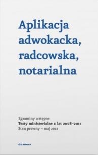 Publikacja została przygotowana z myślą o kandydatach przystępujących się do egzaminów wstępnych na aplikacje adwokacką, radcowską oraz notarialną. Materiał obejmuje testy ministerialne z czterech ostatnich lat, od 2008 r. do 2011 r. Ze wszystkich 1650 ministerialnych pytań testowych, książka zawiera ich 1540. Wszystkie pytania zostały znowelizowane i przystosowane do obowiązującego stanu prawnego. Testy zostały opracowane według stanu prawnego na maj 2012 r. Odpowiedzi zamieszczono bezpośrednio na odwrocie kartki zawierającej pytania. W kluczu odpowiedzi poza wskazaniem prawidłowego rozwiązania, w każdym przypadku podawana jest także podstawa prawna wraz z przytoczeniem treści artykułu lub jego odpowiedniego fragmentu. Kodeksy zostały uzupełnione o statystyki pytań z wyróżnieniem zagadnień, które do tej pory najczęściej pojawiały się na egzaminach. Mamy nadzieję, że publikacja będzie stanowić doskonałą pomoc w nauce, gdyż umiejętność rozwiązywania testów, przy których drobne szczegóły mają często decydujące znaczenie, jest obok wiedzy niezwykle istotna.