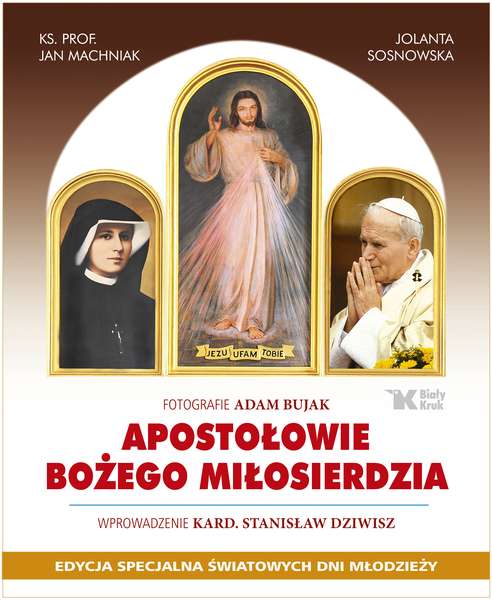 POLECANA PUBLIKACJA NA ŚWIATOWE DNI MŁODZIEŻY 2016!!! Wydarzenia z życia św. Siostry Faustyny i św. Jana Pawła II ukazane w tej książce lepiej pomagają dostrzec Boży plan zarówno wobec tych dwojga wielkich Apostołów Bożego Miłosierdzia, jak i krzewienia na cały świat orędzia o miłosiernej Miłości Boga. Pan Jezus najpierw wybrał na powiernicę swej wielkiej tajemnicy prostą, słabo wykształconą, ale wybitnie pobożną dziewczynę o znakomitej pamięci. Prawdami o Bożym Miłosierdziu zapisywał jej duszę niczym czystą tablicę, a ona wszystko to skrzętnie zapisała w Dzienniczku. Dzięki jej nieustępliwości i przy pomocy bł. ks. Michała Sopoćki powstał pierwszy obraz Jezusa Miłosiernego, zaczęto odmawiać Koronkę do Bożego Miłosierdzia. Po Faustynie musiał już jednak przyjść ktoś o innej osobowości, wybitny teolog i wielki papież, który dokończy rozpoczęte przez nią dzieło – mocą swego urzędu potwierdzi prawdziwość orędzia, beatyfikuje i kanonizuje Sekretarkę Bożego Miłosierdzia, ustanowi święto Bożego Miłosierdzia, dokona aktu zawierzenia świata Bożemu Miłosierdziu, konsekruje łagiewnicką bazylikę, która stanie się światowym centrum Bożego Miłosierdzia. Dzieło św. Jana Pawła II kontynuują dziś z kolei jego następcy – Benedykt XVI i Franciszek, który ustanowił rok 2016 Rokiem Miłosierdzia. O tym wszystkim opowiada fascynująco ta książka, używając piór wybitnego znawcy teologii Bożego Miłosierdzia ks. prof. Jana Machniaka oraz znakomitej publicystki Jolanty Sosnowskiej, a także fotografii mistrza Adama Bujaka.