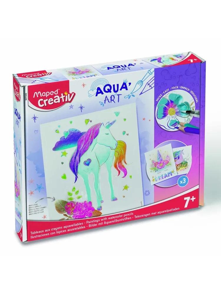 Uwielbiasz taniec? Chcesz ozdobić ściany błyszczącymi i połyskującymi w dzień i w nocy obrazkami z tanecznym wątkiem? W zestawie od Maped Creativ znajdziesz 3 szablony ozdobione błyszczącymi elementami do pokolorowania kredkami akwarelowymi. Nie wyjeżdżaj za linię, nie koloruj połyskujących elementów. Kiedy obrazek jest gotowy sięgnij po wodny pędzelek i pomaluj wszystkie albo tylko wybrane elementy jeszcze raz: pod wpływem wody kolory przepięknie się rozmywają dając efekt WOW. Przy tej pracy nie ubrudzisz rąk, a wodny pędzelek możesz uzupełniać wodą z kranu. Niesamowite efekty wizualne gwarantowane!