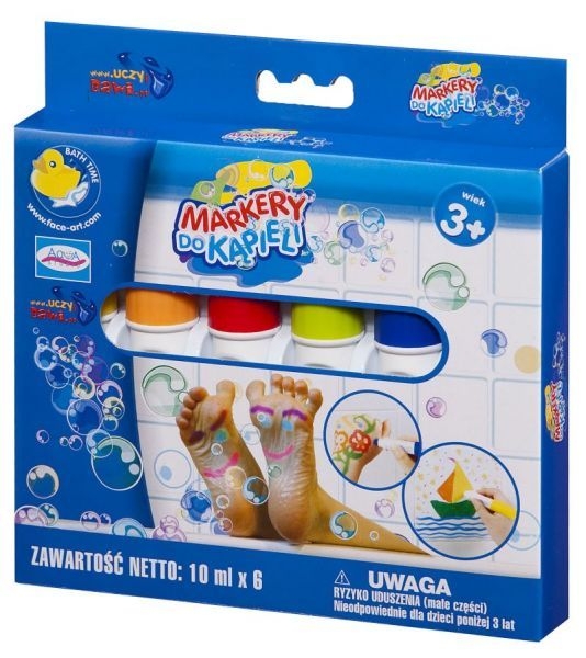 STUDIO AQUA TO SERIA WYJATKOWYCH ZESTAWÓW KREATYWNYCH DO ZABAWY W KĄPIELI. KREDKI , MARKERY I FARBY SĄ BEZPIECZNE I ŁATWO ZMYWALNEZestaw zawiera6 kolorowychmarkerówdo zabawy w kapieli. Kolory markerów : żółty , czerwony , niebieski , pomarańczowy , zielony , fioletowy.