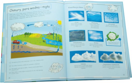 Ten bogato ilustrowany atlas pomoże dzieciom poznać zjawiska związane z pogoda i klimatem. Przejrzyste, obrazowe mapy i plansze dostarczają wiedzy na takie tematy jak: pory roku, deszcze, wiatry i tornada, pustynie, lasy deszczowe i obszary podbiegunowe, zmiany klimatu. Dodatkowe ilustracje ukazują małym czytelnikom poszczególne zjawiska pogodowe, pogłębiają ich wiedzę i rozbudzają ciekawość świata i nauki. Pasjonujący quiz, który umieszczono w tej książce, służy zabawie i zarazem pozwala utrwalić świeżo poznane zjawiska i wiadomości z dziedziny kartografii i geografii.