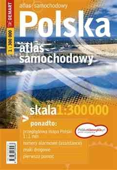 Samochodowy atlas Polski w skali 1:300 000 to wielokrotnie wyróżniana publikacja przeznaczona dla kierowców. Oprócz aktualnej mapy z treścią dostosowaną do potrzeb prowadzących pojazdy taką jak np. sieć dróg z numeracją, lokalizacja czarnych punktów czy miejscach prawdopodobnej kontroli radarowej zawiera również wiele innych dodatkowych informacji. Do najważniejszych należą najcenniejsze zabytki zaznaczone i opisane bezpośrednio na tej mapie. Ponadto atlas wyposażono w:- przeglądową mapę Polski w skali 1 : 1000000 służącą do planowania podróży,- 20 planów przejazdowych miast,- mapy z miejscami tworzenia się korków i proponowanymi objazdami,- rysunki i opis znaków drogowych,- instruktaż udzielania pierwszej pomocy,- wzór wspólnego zgłoszenia wypadku, - wykaz numerów telefonów alarmowych oraz - skorowidz miejscowości przedstawionych na mapie w skali 1 : 300000.