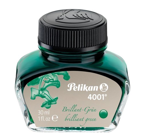 Atrament w szklanej butelce. Tradycyjny atrament w szklanej butelce z wgłębieniem, stanowiącym podstawkę pod pióroOryginalny kształt butelki od 1897.