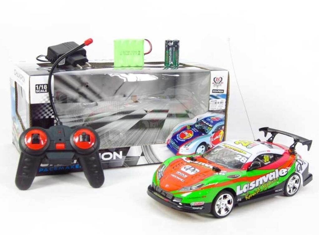 Zdalnie sterowany model samochodu sportowego w skali 1:18.