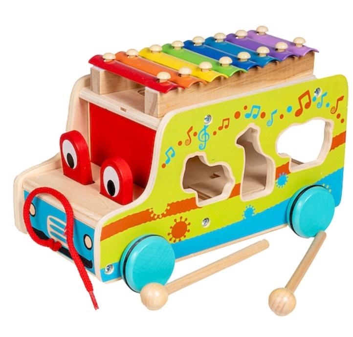 Drewniane auto, na kołach ma gumę, dzięki której nie ślizga się po śliskiej nawierzchni. Dodatkowo gdy ciągniemy za sznurek, zabawnie wprawiamy w ruch oczy. Sorter rozwinie motorykę małych rączek i pobudzi dziecko sensorycznie. Elementem sortera są zwierzęta, dzięki nim nauczymy dziecko odgłosów zwierząt, kolorów. Dźwięki odgrywają dużą rolę w rozwoju dziecka i pozytywnie wpływają na jego zachowanie.