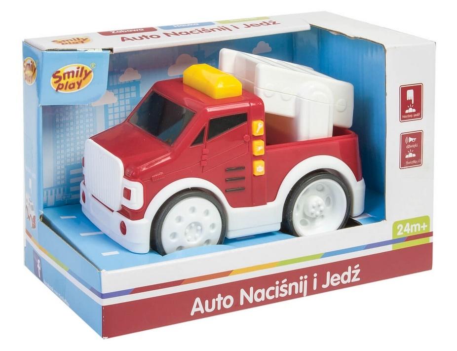 Auto Straż Pożarną można wprawić w ruch naciskając przycisk na dachu. Zabawka aktywizująca, zachęca dziecko do zabawy. Ma 3 przyciski funkcyjne. Każdy z przycisków to inny realistyczny dźwięk: odgłos silnika i dwa sygnały pojazdu uprzywilejowanego na drodze. Naciskając napis ""REV UP"" słychać mocne gazowanie pojazdu i zapala się kogut na dachu.