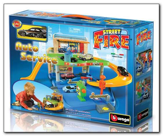 Zestaw zawiera jeden oryginalny metalowy model samochodu Bburago w skali 1:43 z kolecji Stret Fire i jest kompatybilny z wszystkimi modelami samochodów Bburago oraz Ferrari w skali 1:43.