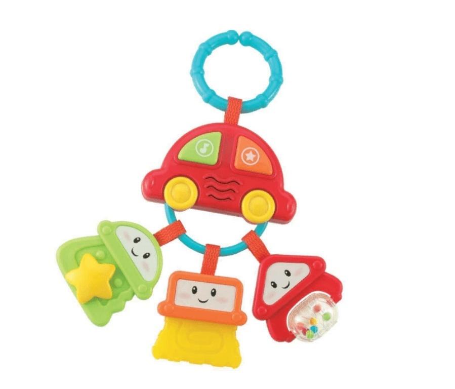 posiada dwa kolorowe przyciski funkcyjne które uruchamiają dźwięki, odgłosy i śmieszne melodyjki