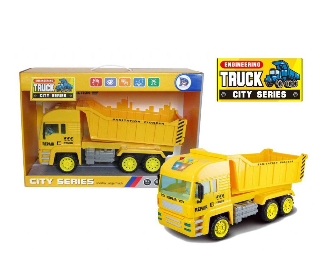 Duży podnośnik do złudzenia przypomina prawdziwy pojazd (36cm). Idealna do zabawy w domu. Zabawka wydaje dźwięki i świeci. Zasilana jest bateriami typu 2x AA (brak w zestawie). Posiada ruchome elementy i platformę na której zmieści się duży ładunek. Ciężarówka ma napęd typu frykcja i i wykonana jest z dobrej jakości plastiku.