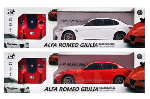 Samochód zdalnie sterowany potrafi jeździć w różnych kierunkach przód-tył, prawo-lewo oraz zawracać. Światała samochodu świecą. Wyprodukowany na styl samochodów ALFA ROMEO GIULIA. Produkt wykonany z plastiku. Przeznaczony dla dzieci od lat 3. Wymaga zasilania bateriami auto 4xLR6, pilot 2x LR6.
