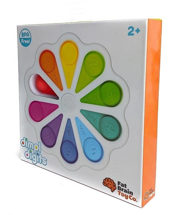 Bąbelki Cyferki Dimpl. Zabawka sensoryczna. Małe paluszki nie będą mogły się oprzeć miękkim, silikonowym bąbelkom w kolorach tęczy. Zabawka o nowoczesnym designie, innowacyjna, kolorowa, stymulująca zmysły dziecka. 10 baniek, umieszczonych w plastikowej ramie, można wciskać i wypychać, przy tym ucząc się cyferek. Każdy bąbelek z jednej strony ma wytłoczone cyferki od 1 do 10 z towarzyszącym mu napisem w języku angielskim, z drugiej strony kropki reprezentujące cyfrę i opis w języku hiszpańskim. Sensoryczna zabawka dla dzieci już od 2 lat, która będzie stymulować, uczyć i bawić malucha. Bąbelki Cyferki Dimpl: Zabawka nagrodzona główną nagrodą Targów Kielce, Kids' Time Star! Sensoryczna zabawka do nauki cyferek w języku angielskim i hiszpańskim. 10 kolorowych silikonowych baniek w kolorach tęczy w plastikowej ramie. Pomaga w rozwoju umiejętności motorycznych, uczenia się cyferek, liczenia. Z jednej strony bańki mają cyferki i opis w języku angielskim, z drugiej liczba kropek i opis w języku hiszpańskim. Przepiękna zabawka o nowoczesnym designie, o której nie można oderwać rąk i wzroku. Bezpieczna zabawka, nie zawiera BPA, plastik najwyższej jakości. Dla dzieci już od 2 lat +.