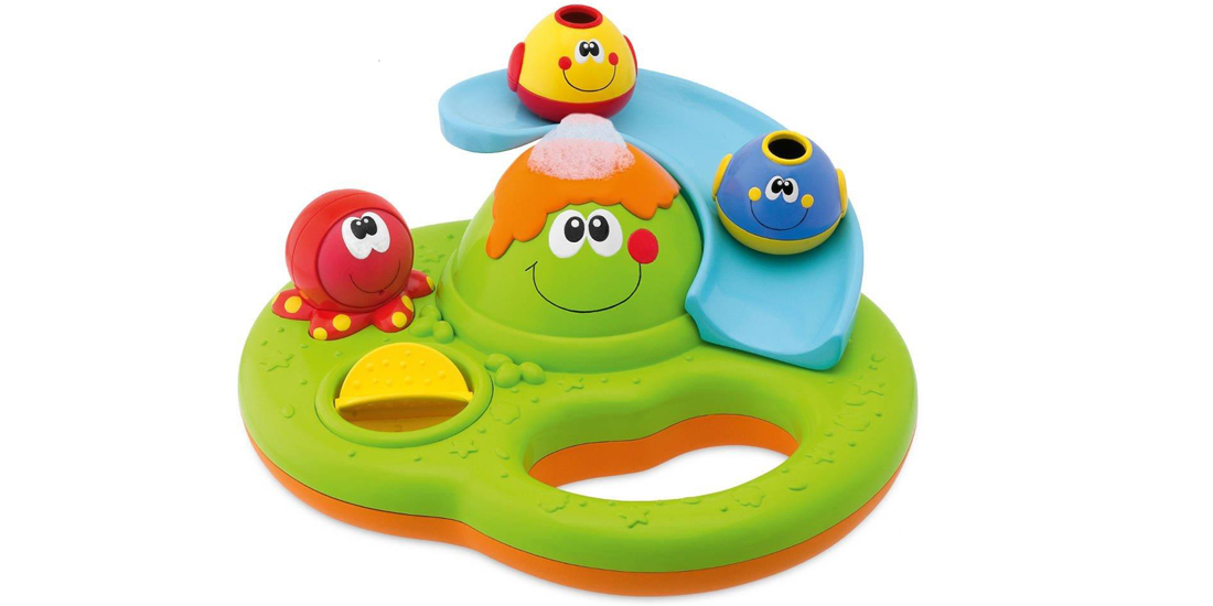 Kąpiel to świetna zabawa! Zabawka, która umila czas dziecku podczas kąpieli. Wiele wspaniałych zabaw: zjeżdżalnia dla dwóch małych rybek, które mogą zjeżdżać do wody oraz koło wodne, które rozpryskuje wodę. Gdy dziecko ściska ośmiorniczkę, z wulkanu wydostają się magiczne bańki mydlane.