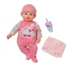 Lalka My Little Baby Born skradnie serce każdej małej dziewczynki. Lalka jest słodziutka a jej miękki brzuszek sprawia, że miło się ją przytula. Co więcej, lalka uwielbia kąpiele! Specjalne tworzywo, z którego jest zrobiona sprawia, że lalka szybko wysycha i znów jest gotowa do zabawy. Mięciutka, słodziutka i uwielbiająca kąpiele! Lalka ubrana jest w różowy pajacyk z ładną aplikacją oraz czapeczkę. Do zestawu dołączono butelkę oraz pieluszkę. Lalka posiada piękne, prezentowe opakowanie.Wysokość lalki: 32 cm