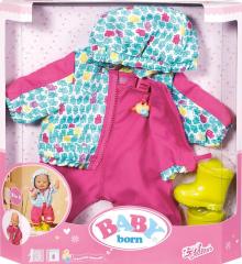 BABY born - Ubranko jesienne dwustronne dla lalkiCudowna zabawa ""w mamę"" z uroczą lalką BABY born!Dla Baby born przygotowano specjalny, niezwykle uroczy komplet na deszczowe dni. Zestaw składa się z dwustronnej różowej kurteczki z kapturkiem. Z drugiej strony kurteczka obszyta jest wzorzystym meteriałem. To mała mama decyduje w jakiej odsłonie wystapi Baby born. Do tego mamy różowe spodenki na szelkach oraz zielone kaloszki. W takim ubranku mała Baby born może śmiało wyruszyć na jesienny spacer.Zestaw nie zawiera lalki.