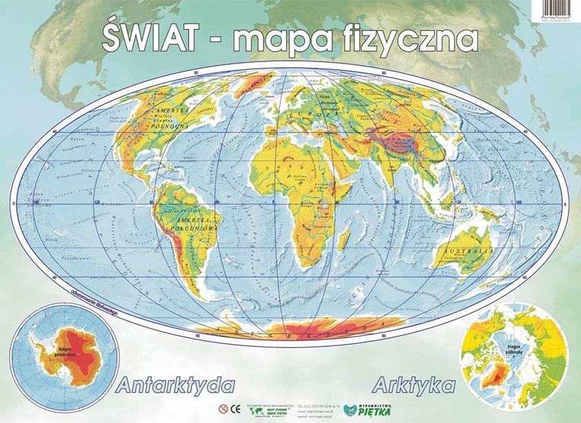Puzzle na których znajduje się mapa fizyczna świata to świetne narzędzie dydaktyczne. Zachęcą dziecko nie tylko do zabawy, ale także do nauki. Mapa prezentuje fizyczny podział świata z wyróżnieniem dwóch biegunów południowego i północnego, po lewej oraz prawej stronie. Na mapie znajdują się także nazwy kontynentów, oceanów oraz innych ukształtowań terenu. Zabawa w układanie puzzli stanie się dla dziecka nie tylko rozrywką, ale także pomoże mu w orientowaniu się w poszczególnych miejscach i regionach świata.