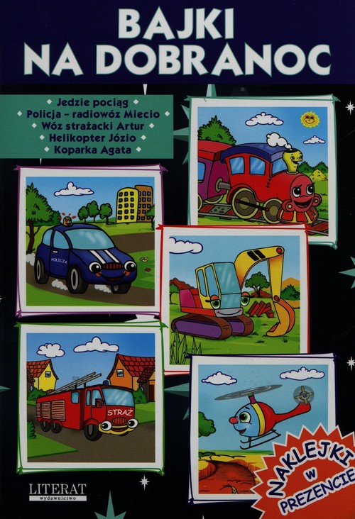 W książeczce znajdziemy bajki: Jedzie pociąg, Policja - radiowóz Miecio, Wóz strażacki Artur, Helikopter Józio, Koparka Agata.